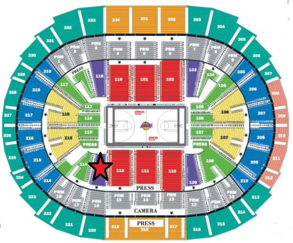 Section 113 - Row 12 - Seats 7-8 - ACROSS FROM THE LAKERS BENCH!